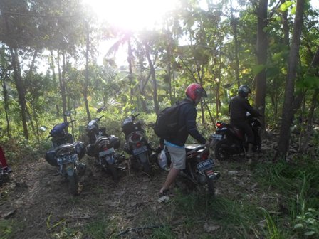 | Motor yang kami parkir di kebun pinggir jalan masih aman. hihihi |