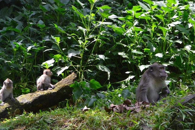 Saya dan Mas Sandy berjalan menyusuri jalan setapak di pinggir jurang (aliran air ada dibawah jalan) sambil makan gorengan yang tadi sempat saya beli di depan. Yang menarik, disepanjang jalan ini, kita akan disambut siimut berekor! Yes, It's Monkeys! :D