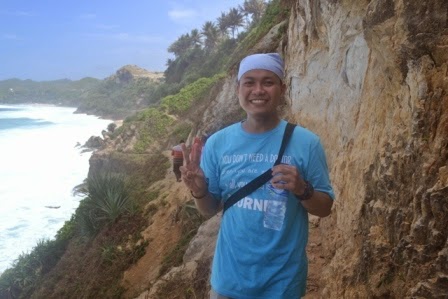 | Selfie di jalan setapak sisi tebing buatan menuju pantai kijingan. |