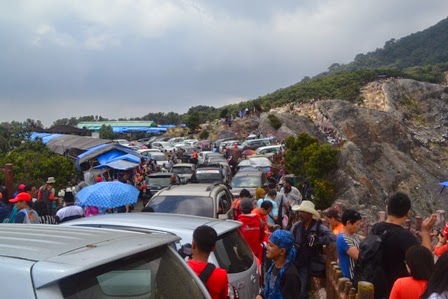 banyak sekali yang berkunjung ke gunung tangkuban perahu, sampai macet seperti itu..