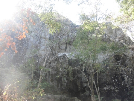 | Dinding tebing yang tidak luput dari tindak vandalisme |