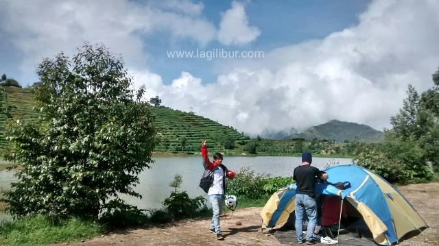 Matahari semakin meninggi, kamipun kembali turun ke Telaga Cebong. Mie instan dan kopi adalah teman obrolan kami pagi itu di tepi telaga. Terlihat beberapa pengunjung melakukan hal yang sama di depan tendanya. Telaga Cebong di kelilingi oleh perbukitan hijau, di sekelilingnya dijadikan sebagai camping ground terutama bagi pengunjung yang ingin naik ke Puncak Sikunir. Di area ini sudah dilengkapi fasilitas yang cukup lengkap seperti toilet, mushola, warung makan, dll. Menikmati pagi di Telaga Cebong sangatlah menyenangkan, apalagi saat cuaca cerah. Langit biru dan awan putih seakan menjadi tempurung yang mengurung kami dalam sebuah lembah indah.